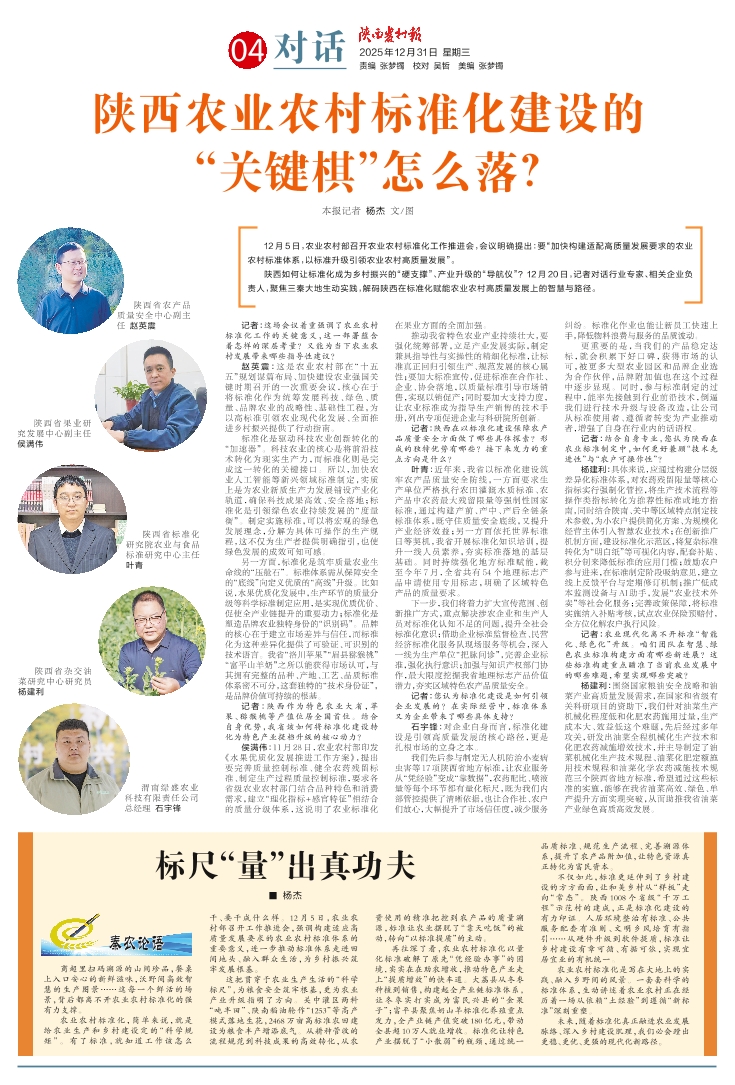 对话:陕西农业农村标准化建设的“关键棋”怎么落?