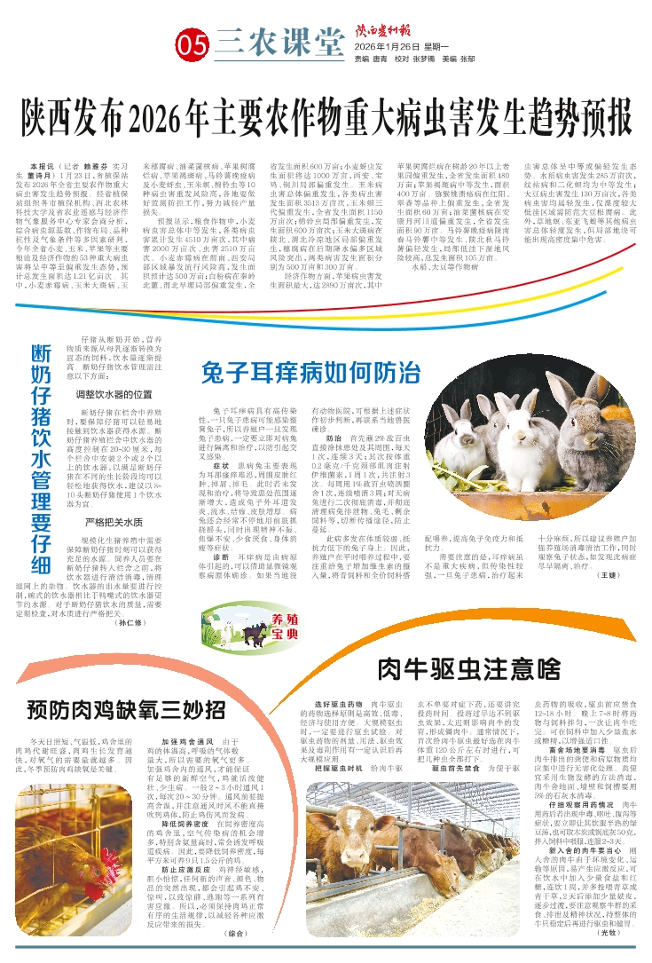 • 陕西发布2026年主要农作物重大病虫害发生趋势预报