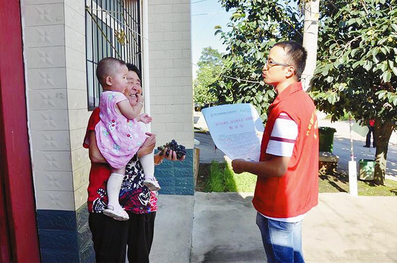 志愿者上门为群众发放调查问卷。 本报讯(记者 孙金龙)“阿姨,咳嗽时捂住嘴巴、过马路时走斑马线、不乱扔废弃垃圾,这些在我们日常生活中能做到的‘顺手小事’,都是文明之举,这都能为我们的创文行动加分添彩。”8月13日下午,西咸新区秦汉新城双照街道组织星火志愿者开展“敲门”送文明行动。