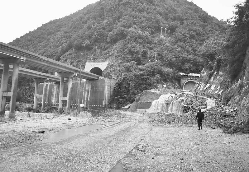 受强降雨影响,宝鸡市辖区省道219(原212)凤县段道路中断,244国道道路维修及部分道路塌方,两条道路需要长时间维修。图为244国道太白至留坝段水毁严重,道路中断,现已实行交通管制。 记者 边浩 摄