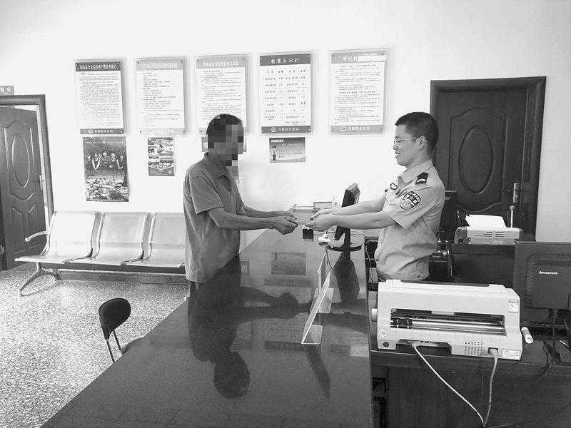 宋大爷从民警手中接过户口本。 本报讯(记者 崔福红 通讯员 王英姿)8月18日,拿到户口本的宋大爷激动地说:“终于不再是‘黑户’了,感谢你们解决了我的‘心头事’。”