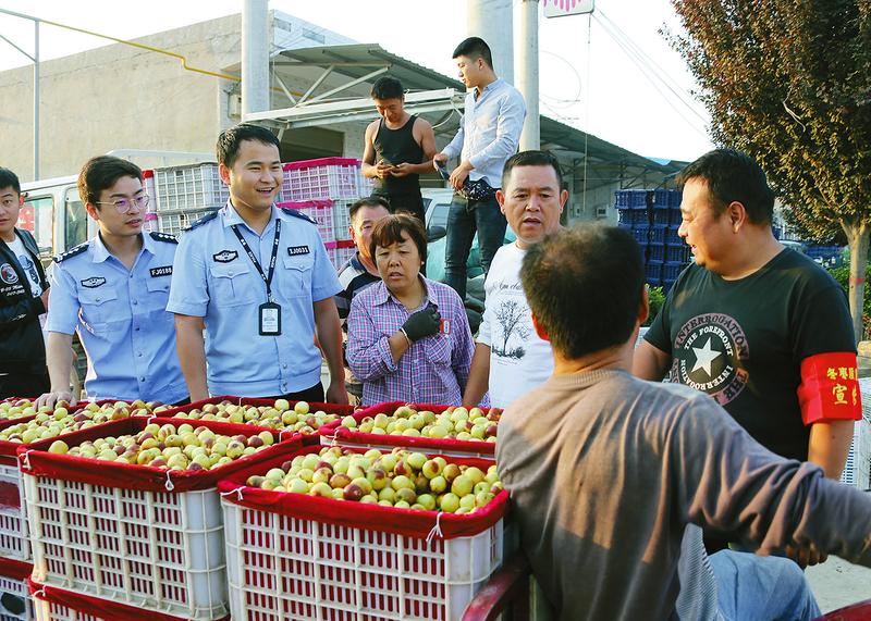 为确保冬枣农产品质量安全和冬枣市场交通秩序,大荔县安仁镇联合公安、交警、市场监督等部门,组成冬枣治安巡逻队,为辖区冬枣产业保驾护航。