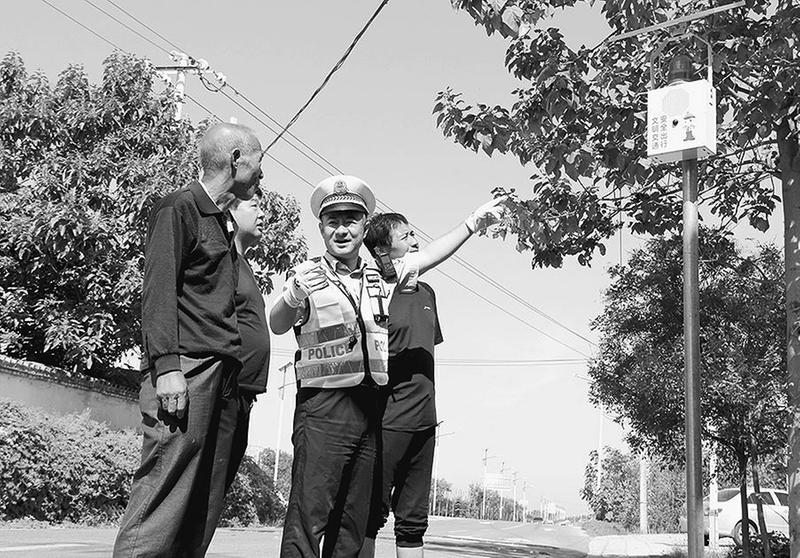 9月19日,渭南市公安局交警支队临渭大队民警正在通过语音小喇叭提示过往村民安全出行。