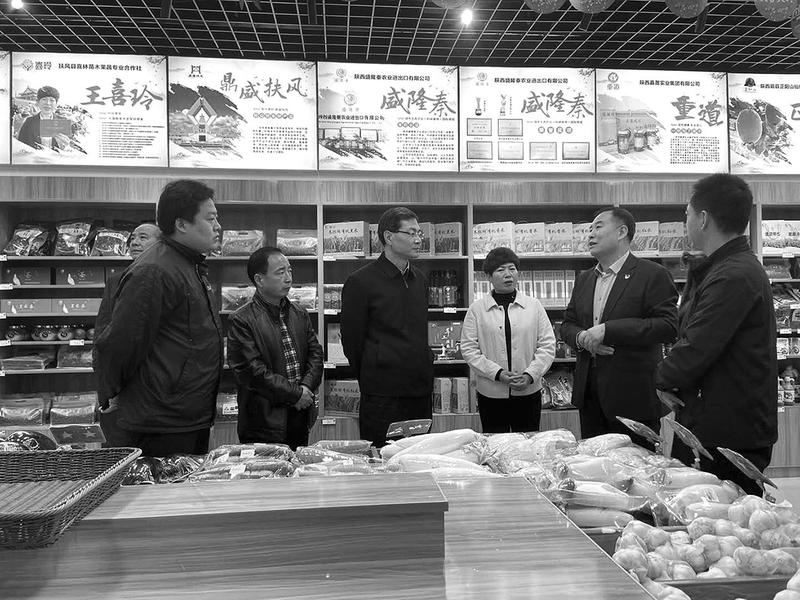 相关领导在“盛隆秦”超市与王喜玲了解农产品销售情况 张新龙 报道