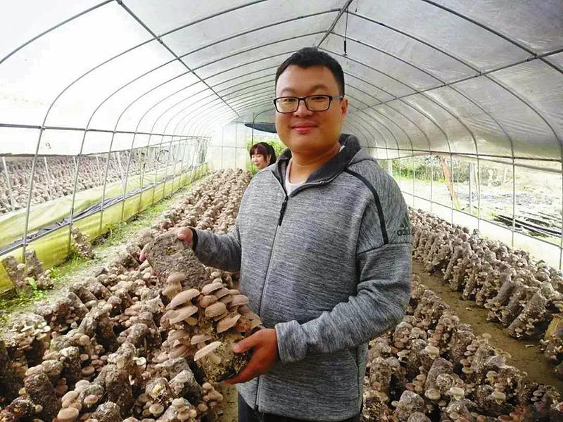 程一博看到丰收的香菇信心十足。 本报记者 赖雅芬 通讯员 周崇红 文/图