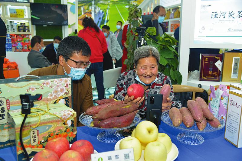 2 线上交流氛围浓 今年上半年,因为在线上直播卖杏而红遍全国的网红“杏奶奶”崔淑侠,这次也来参展了。在D馆的西咸新区展厅,崔奶奶卖的不是杏,而是红薯。“红薯好吃得很,又甜又面,还没有丝,我自己也爱吃。”面对镜头和现场观众,崔奶奶一点也不怯场,热情地为大家介绍红薯的优点。