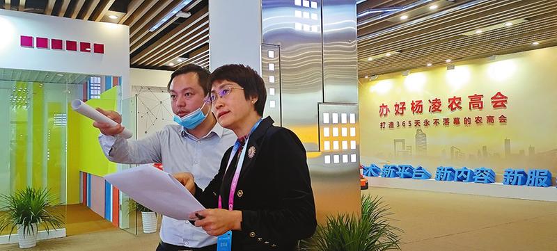 该展厅还设有“云上农高会”淘宝直播间,通过邀请明星逛展、进行网红主播专场直播等方式,向大家推介特色农产品。本届农高会代言人——陕北青年歌手王二妮也来到了“云上农高会”展厅。听完工作人员介绍,她深有感触地说:“我在展馆里参观学习,便于更好地宣传咱们陕西的农业,宣传杨凌农高会。”