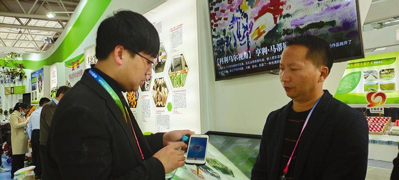 周至县推介农产品同样是采用了线上和线下两种宣传方式。“我们的猕猴桃主要是通过线上销售,效果很好。今年农高会推出“云上农高会”App,方便又省事,为农产品销售找到了一条更好的出路。”工作人员张文馨正通过手机为参展客户介绍产品。