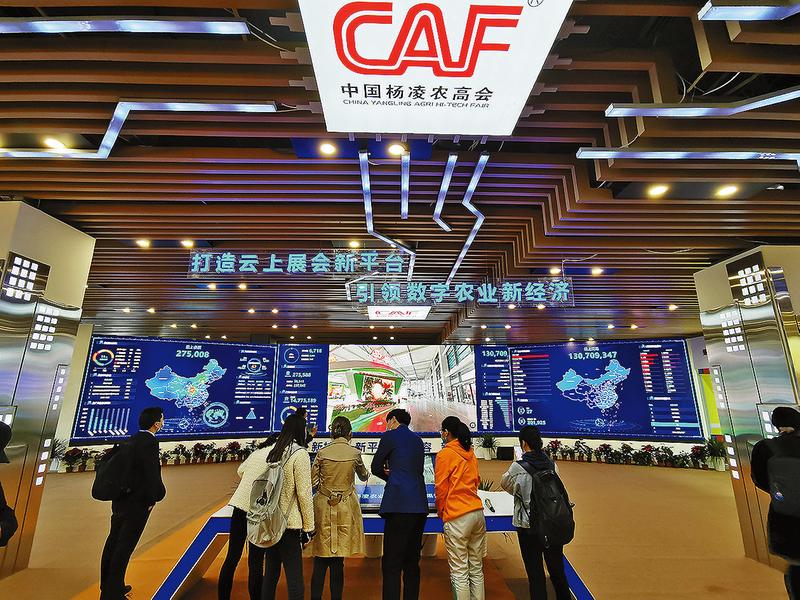 本届农高会,杨凌示范区联合阿里巴巴共同推出首届“云上农高会”,实现了365天永不落幕的乡村振兴成果的云上展示。“云上农高会”体验中心位于农高会D馆。它依托人工智能、大数据、物联网、云计算、VR等先进技术,线上线下融合展会新平台,开展“云展览”“云会议”“云洽谈”“云直播”“云交易”“云管理”等活动,形成线上线下办展、参展、逛展生态循环,推动农高会筹办水平实现新跨越。