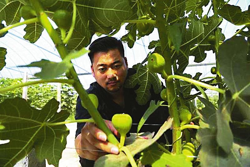 方瑜在棚内查看无花果生长情况。
