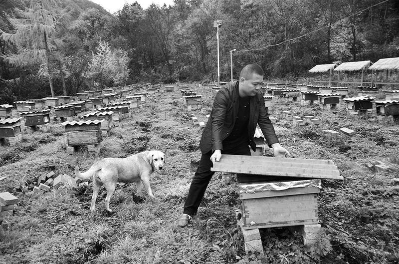 杨帆在辛家山养殖基地检查土蜂生活情况。