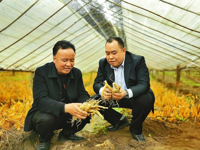 姚远(右)采访西洋参种植户。