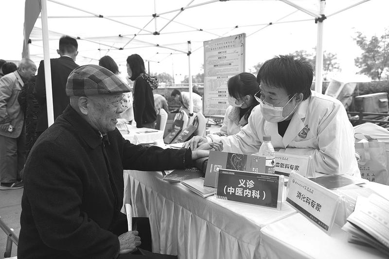 11月12日,西咸新区沣东新城“提升公众满意度创新发展看西咸”便民惠民政策宣传讲解活动在三桥街道举行。活动现场,工作人员通过政策咨询、惠民义诊、免费理发、扶贫产品义卖等方式宣传便民惠民政策,获得群众好评。图为医务人员正在为群众义诊。 记者 孙金龙 摄