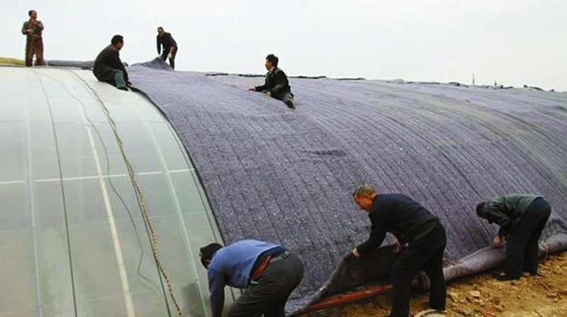 保障棚室密封性 棚室前脸是漏温的一个关键区域,由于前脸覆盖物容易受到地面湿气、棚膜破损后溢出湿气的侵蚀,覆盖物老化过快,在冬季容易结冰,使得前脸的保温性降低。可使用双层覆盖,即内层使用薄膜覆盖,然后在薄膜上再添加旧草帘、无纺布等覆盖物,宽度应大于前脸高度,到地面再保留20厘米。进入棚室,会带入冷风,瞬间降低入口附近的温度,对蔬菜生长不利,建议在棚室入口处设置3~5米的小隔间,起到隔离冷风的作用。放风口下,由于日常通风需要,风口下蔬菜容易受冷风危害,在下风口设置挡风膜,起到缓冲冷风的作用。