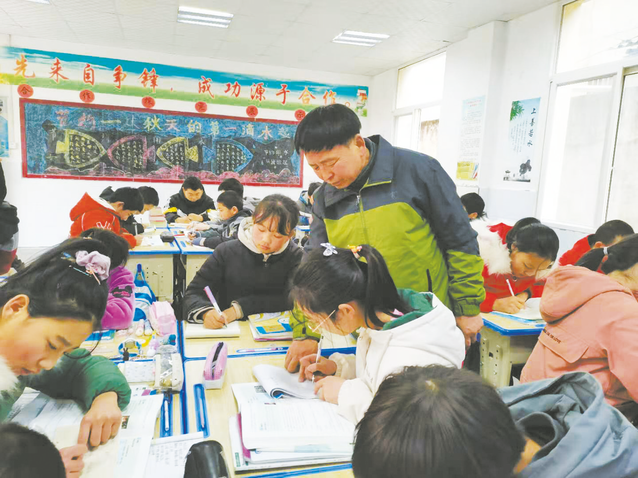 陈绪勇正在给学生辅导功课。