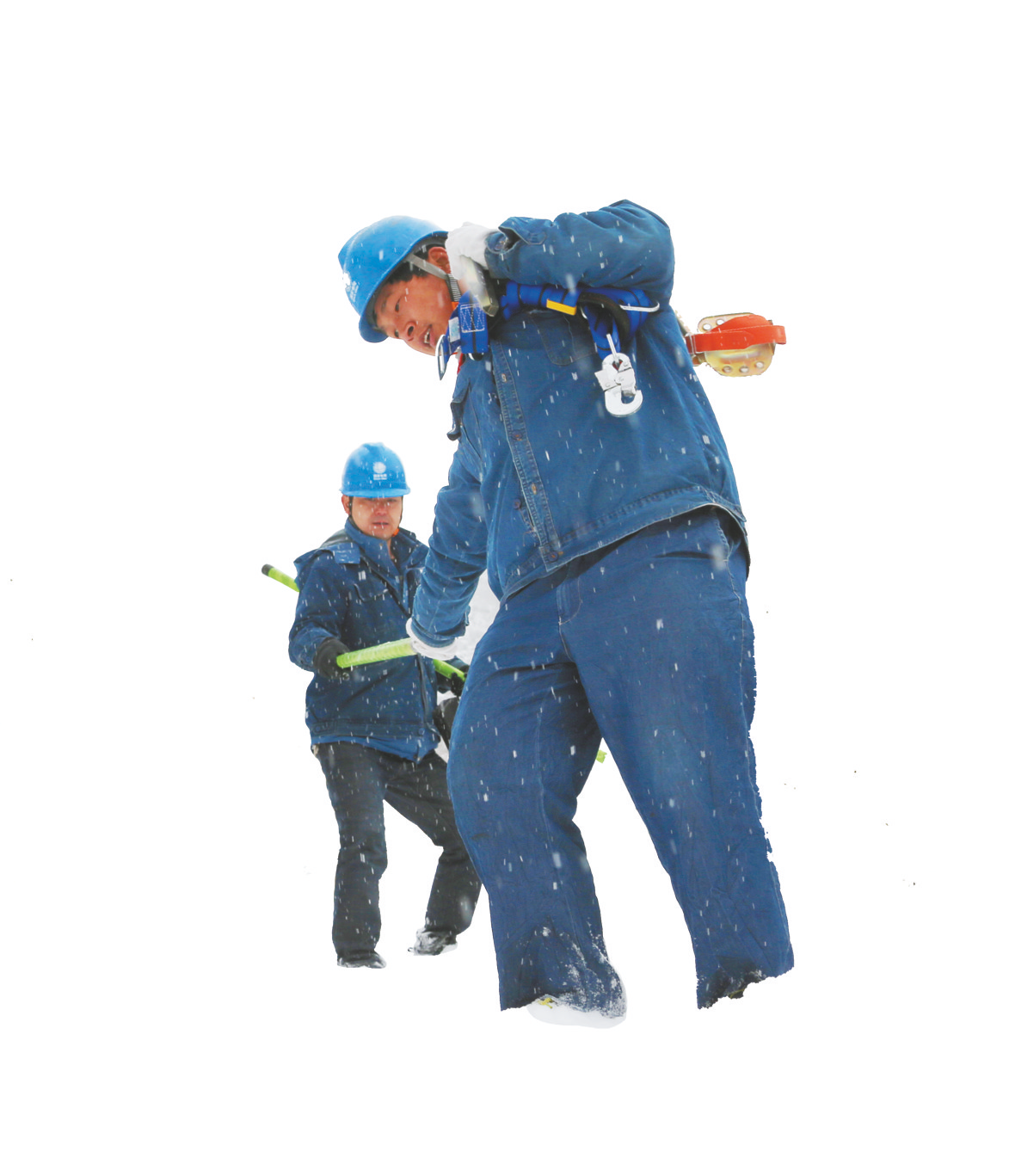 ⑤国网延安供电公司员工不惧风雪,守护光明。 刘浩 摄