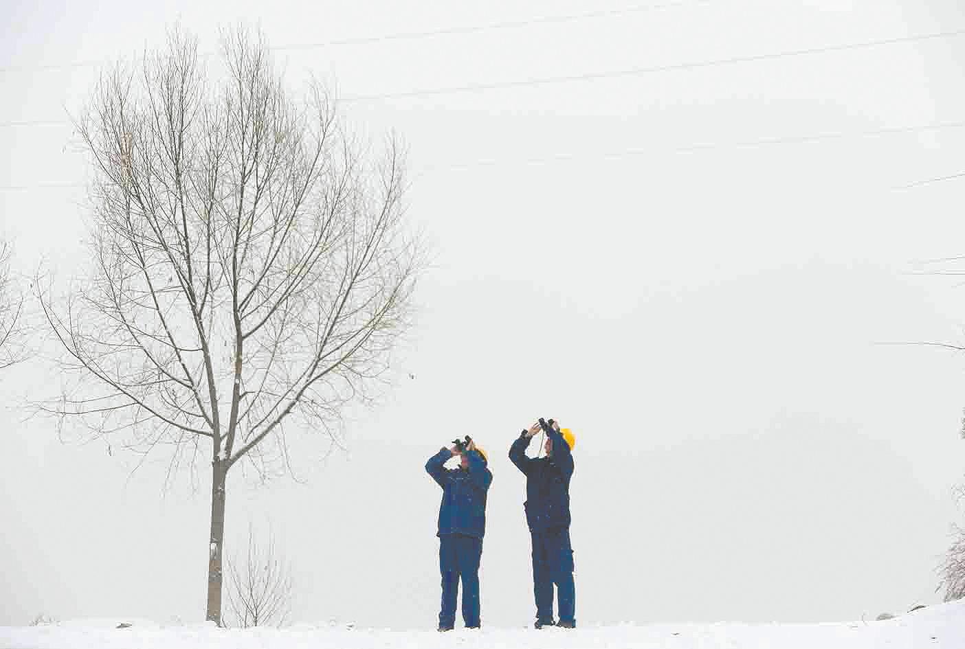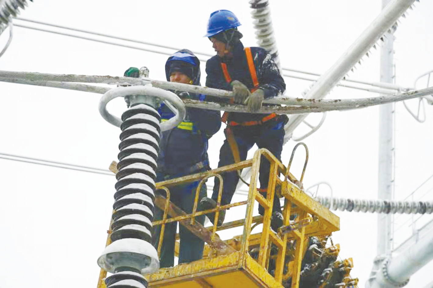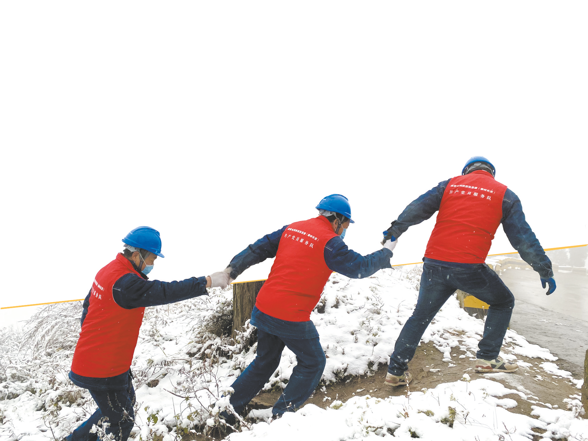 ⑪ ①国网商洛供电公司员工雪中抢修,快速排除故障,保障群众取暖。 张宪平 摄