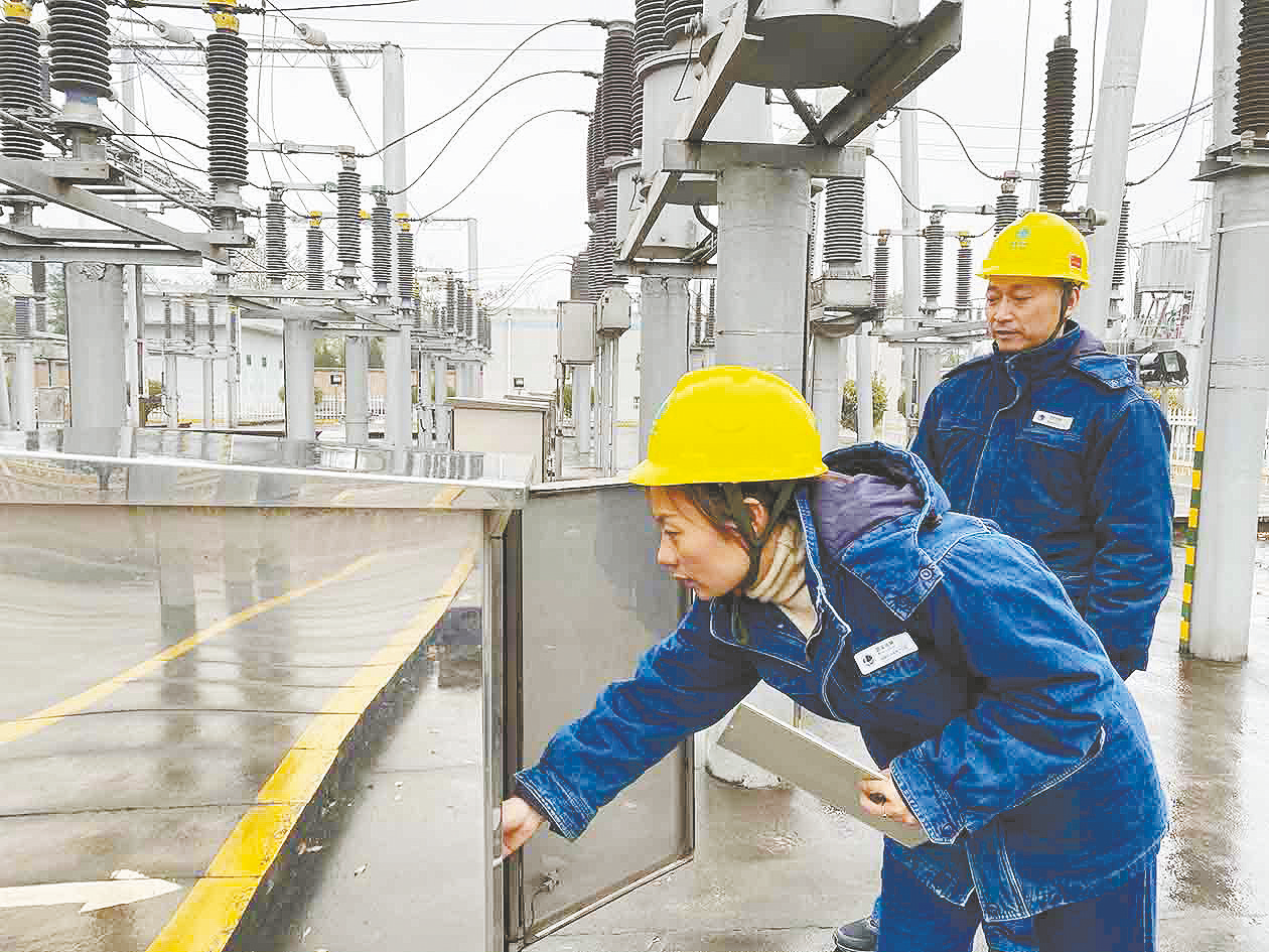 ②国网渭南供电公司员工在110千伏良田变电站对设备进行全面巡视。 徐勇 摄