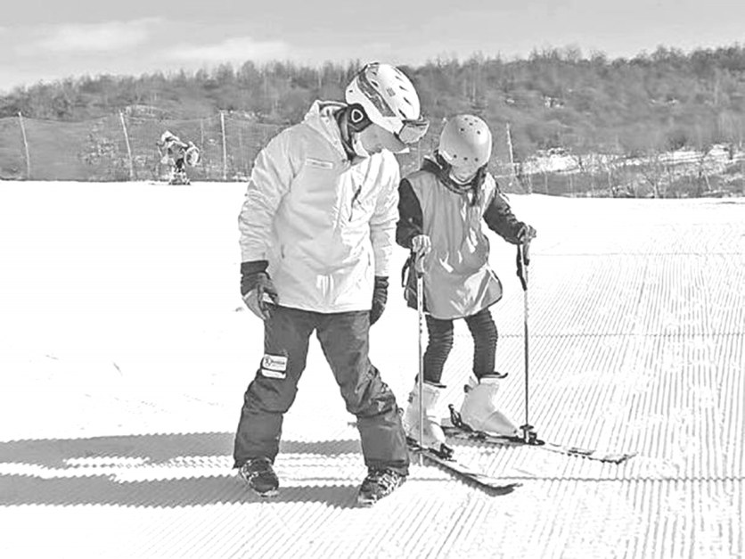 本报讯(巨侃 文/图)“身子往下蹲,脚呈内八字,打开滑雪板板尾……”12月11日,在专业教练的指导下,宝鸡市300余名中小学生迎来了他们今冬的第一堂滑雪课。