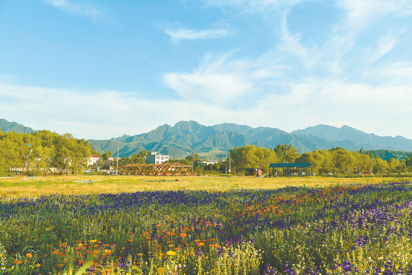 随着时间的推移,我省每条河流都发生了“脱胎换骨”的改变,峒峪河也不例外。经过几年的综合治理,河流防洪防汛能力不断提升,水生态环境逐渐改善。每年秋天是峒峪河最美的时候:清清的河水泛着微微涟漪,沿河的田地在秋风中翻滚着稻浪,大片百日菊和薰衣草花海将河岸装扮得分外妖娆。