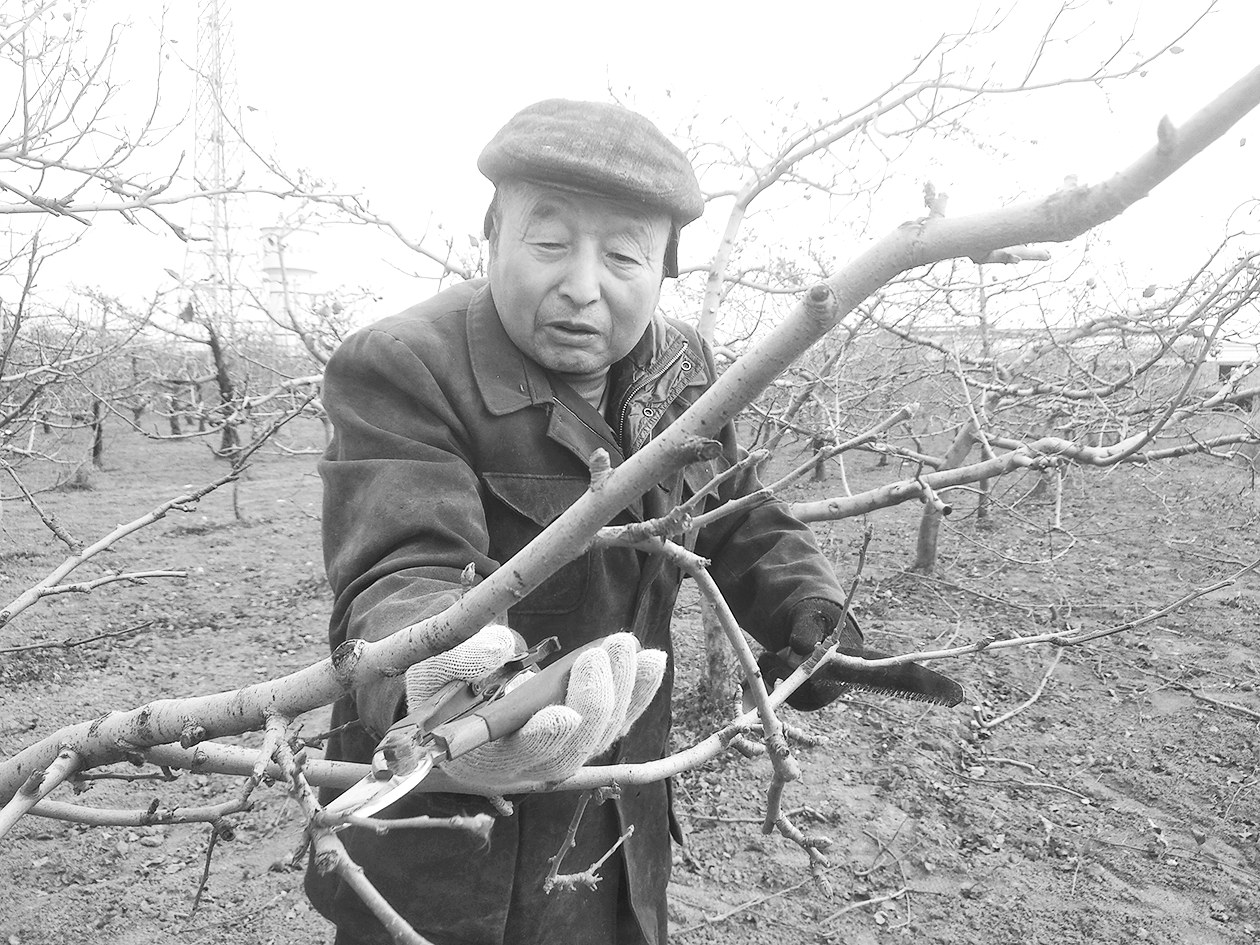 隆冬时节,永寿县群众利用冬季空闲时间,抓果园管理,为果业丰产增收打好基础。图为1月2日永寿县监军街道永安村六组果农安迎社在果园修剪苹果树。 通讯员 李建龙 摄