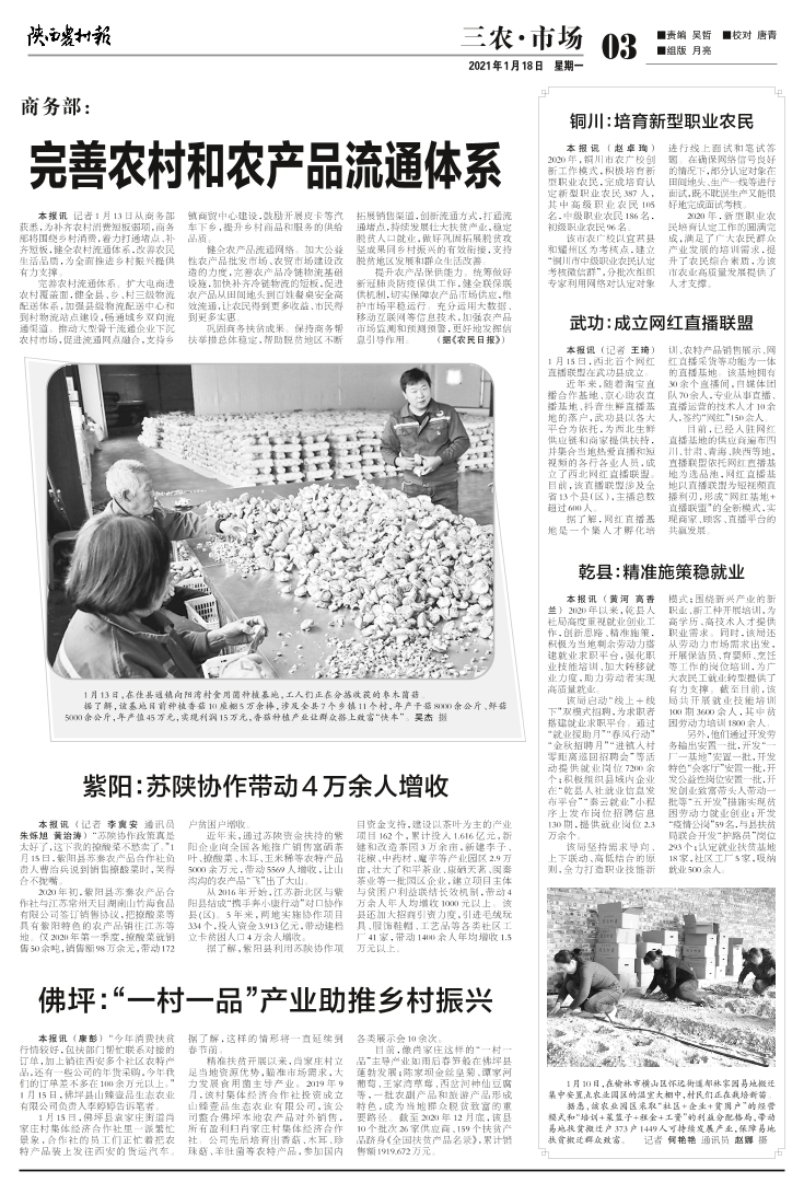 商务部:完善农村和农产品流通体系