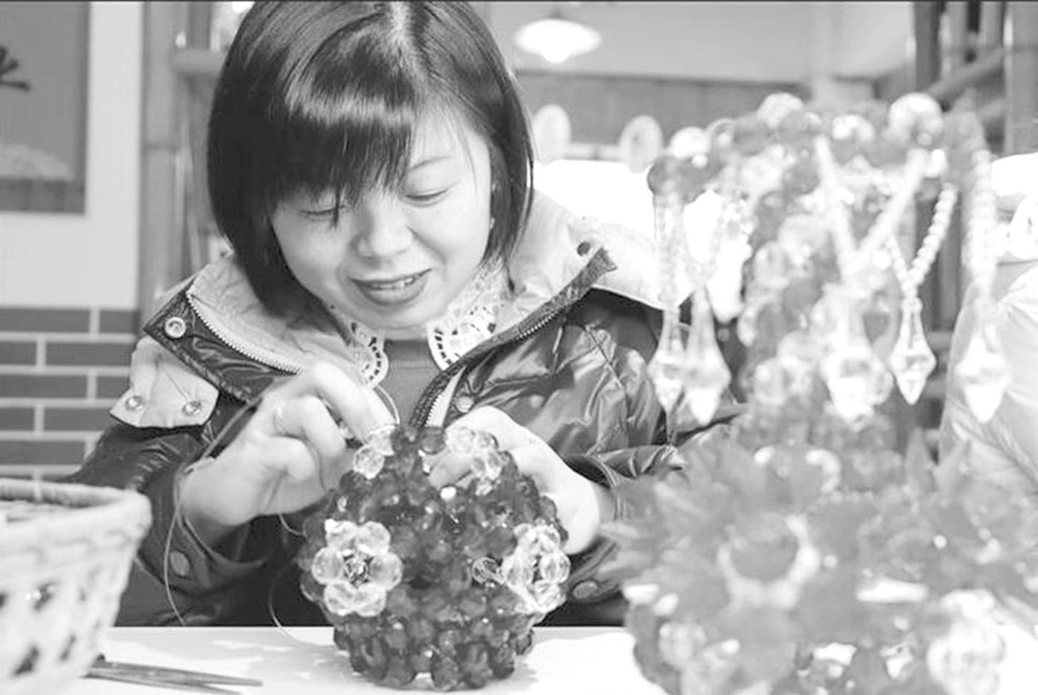 据了解,自2018年羌编手工艺品有限公司成立以来,公司以“公司+合作社+基地+农户”的发展模式吸纳当地贫困户从事羌编。截至目前,该公司已带动500户1000余人增收。图为社区工厂务工人员刘春燕正在做手工串珠。