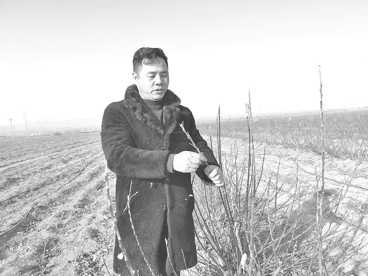 梁茶海查看从荷兰引进的砧木长势情况。 本报记者 赖雅芬 通讯员 蔡妮 燕飞翔 文/图