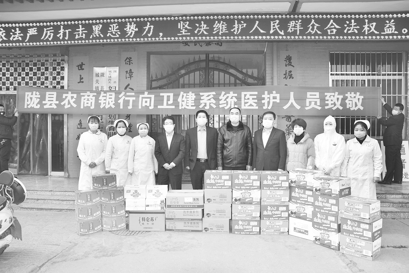 陇县农商行为县医院疫情防控一线人员捐赠生活物资。 本报记者 赖雅芬 通讯员 王炅颢 文/图
