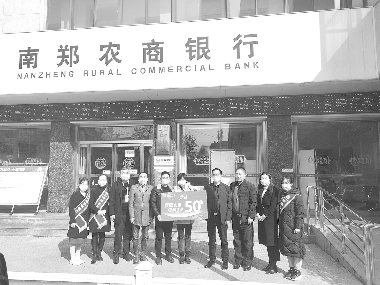 南郑农商银行汉山支行工作人员为李娜(右五)发放“先锋模范贷”50万元。 本报记者 赖雅芬 通讯员 廖虹 文/图