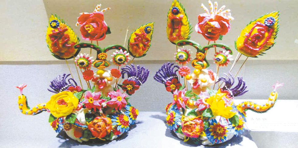 你瞧那些花馍上,红色的金鱼甩着尾巴畅游,橙色的小鸟振翅欲飞,金黄的龙凤你呼我应,粉红的寿桃精致可人。它们栩栩如生、惟妙惟肖,既为喜庆的春节增添了绚丽的色彩,也丰盛了餐桌上的年夜饭。