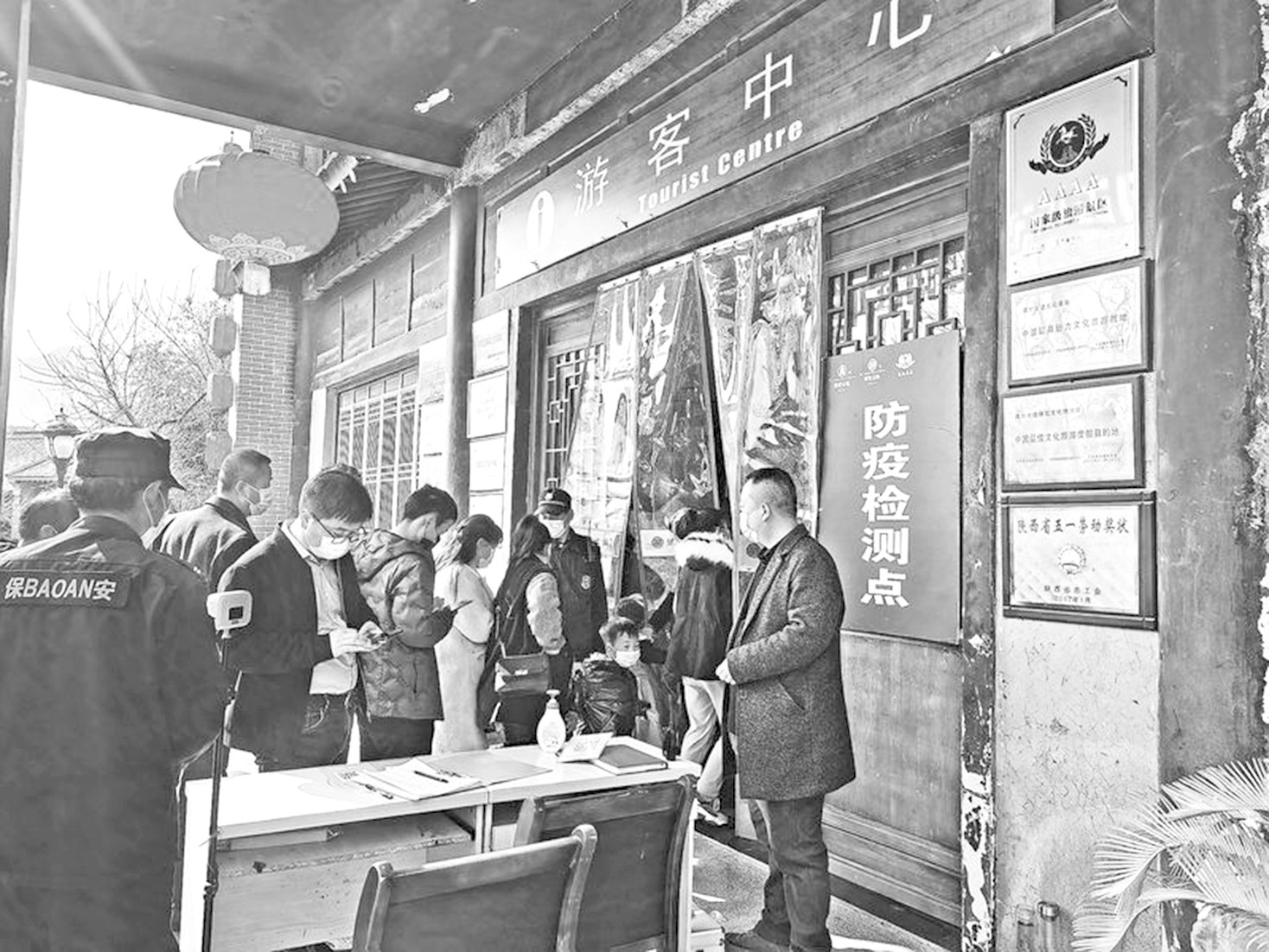 2月12日,农历正月初一,丹凤县棣花古镇迎来客流高峰。笔者在景区入口看到,游客自觉佩戴口罩,有序排队测量体温,并出示健康码。工作人员表示,景区合理控制入园人数,严格落实春节旅游防疫措施,确保游客安心游玩。