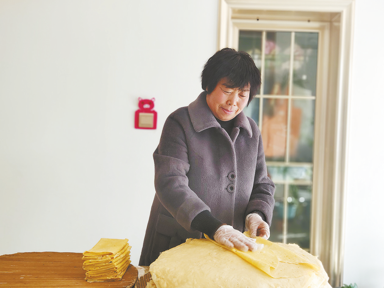 商建芬正在包装煎饼。 通讯员 夏蓓蓓 文/图