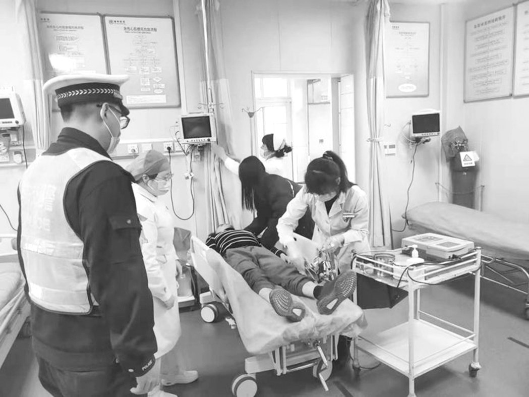 民警看到此情况后,立即驾驶警车为其开道护送。民警一路开启警灯、警笛,迅速将轿车护送至附近的医院,为救治患者争取了宝贵时间。