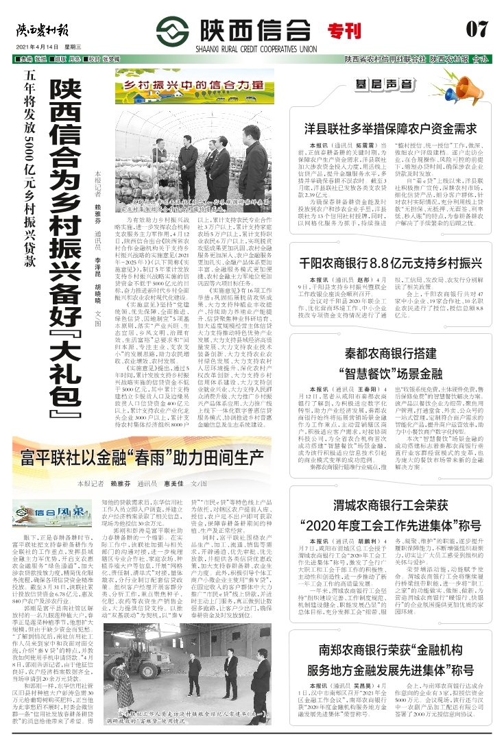 渭城农商银行工会荣获“2020年度工会工作先进集体”称号