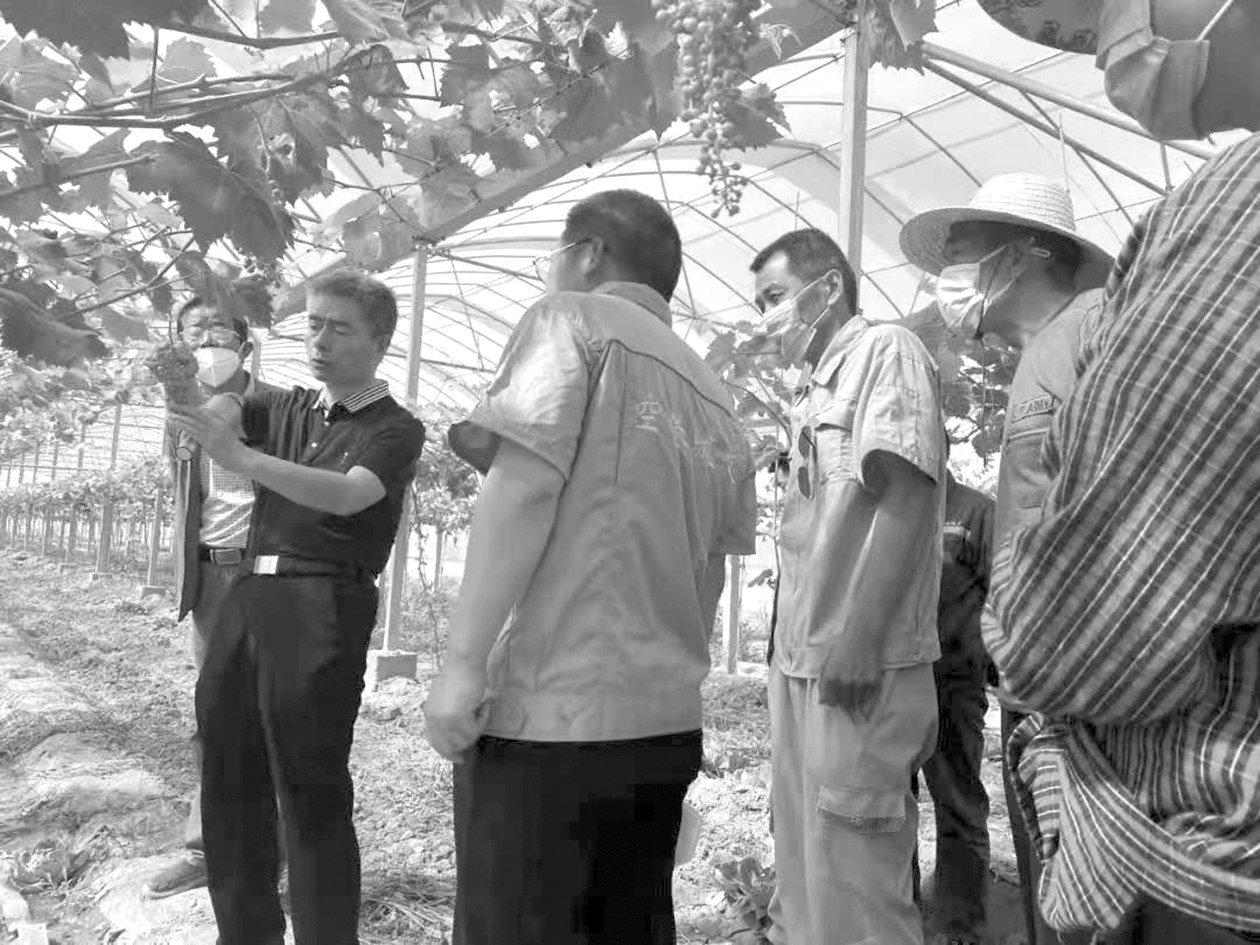 空港临空生态农业示范园内专家在传授葡萄种植技术。