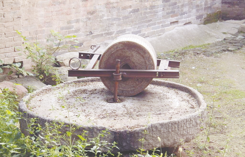 我出生于20世纪80年代初期,那时候我们村没有通电,磨面粉都是用传统的石磨。在我居住的老院子里,就有一个磨坊,那时候大伙儿一个锅里吃饭。爷爷兄弟四人,每人都生养好几个娃娃,一个大家族几十口人,不说别的,光吃饭就是个大问题。四位奶奶整天轮流推石磨,为一大家子人吃饭操劳着。