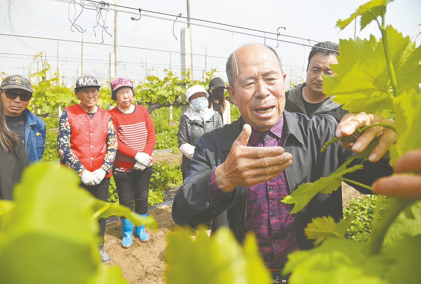 4月26日,西咸新区农业农村局特邀省葡萄协会技术总监、高级农艺师王辉。为农民传授葡萄管理技术。