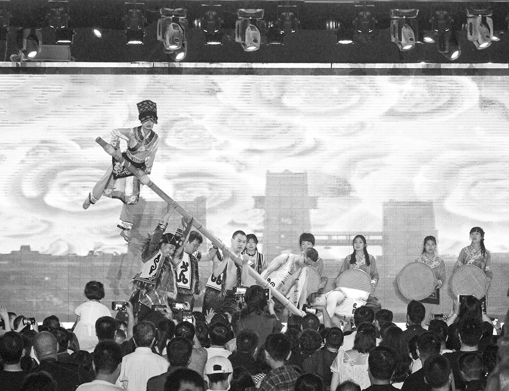 “五一”黄金周期间,宁强县青木川古镇景区游人如织,接待游客24.86万人次,实现旅游综合收入1.2亿元,同比增长80.8%和93.8%。图为游客在青木川古镇观看推杆舞。 刘炳林 龚江 摄