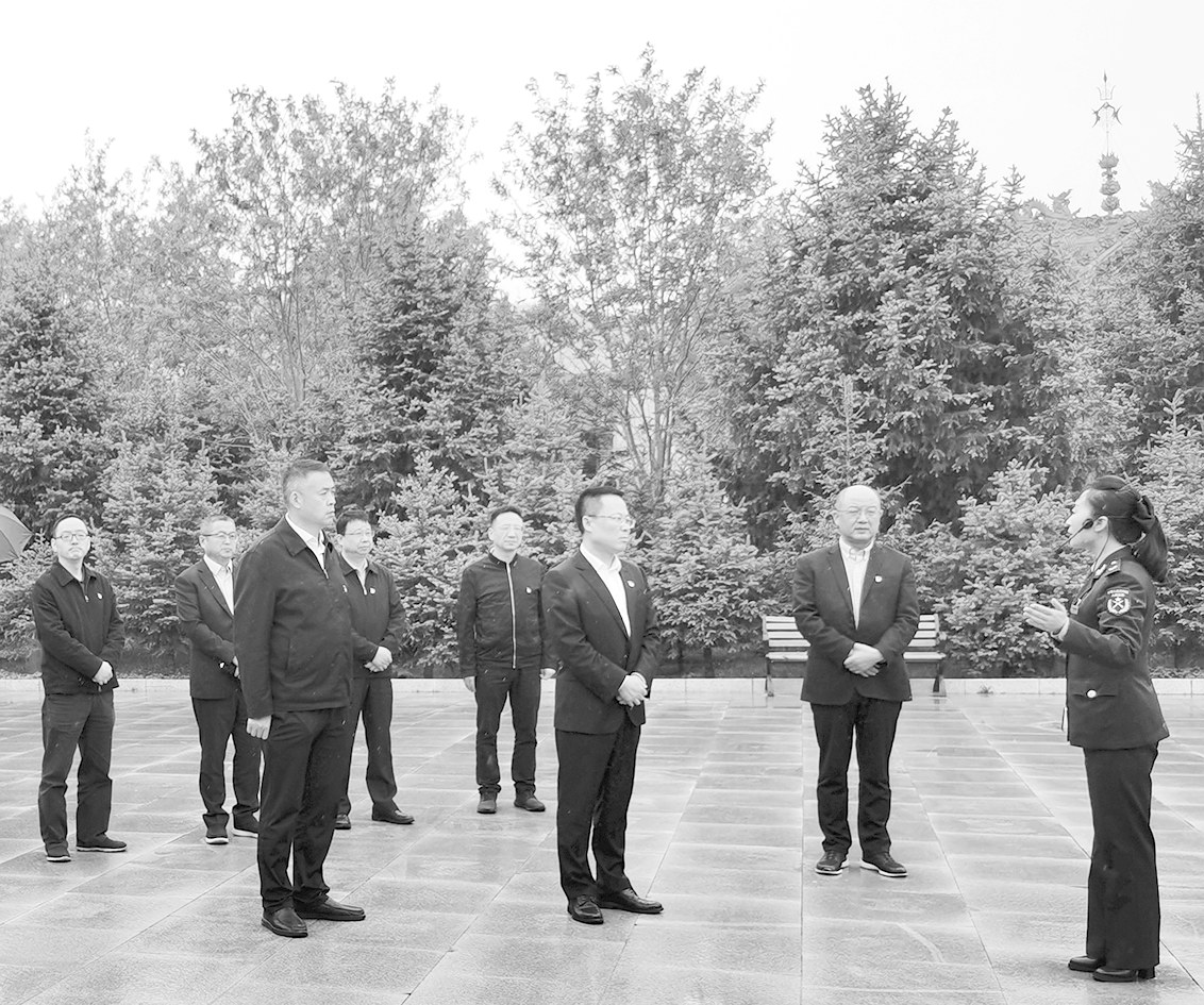 甘肃会宁红军长征会师纪念馆工作人员向省联社党委副书记田亚欧(右三)、党委副书记鲁怡然(右二)、党委委员毛小萌(前排左一)及其他员工介绍会师历史。 本报记者 赖雅芬 通讯员 李慧 文/图