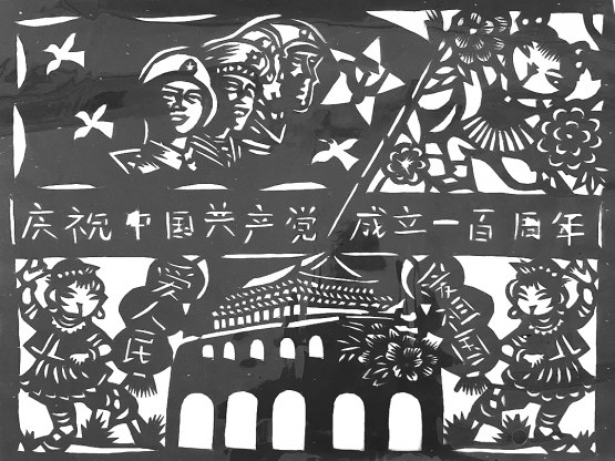今年是建党100周年,李淡林创作出《庆祝中国共产党成立一百周年》《祝福祖国》《长征路上》《中国梦》等红色主题的剪纸作品,这些作品构图复杂、刀法细腻,惟妙惟肖。