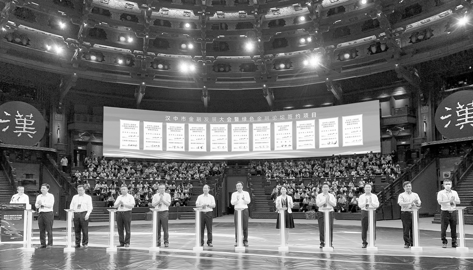 省联社党委副书记田亚欧(右三)参加汉中市金融发展大会暨绿色金融论坛签约项目。 本报讯(记者 赖雅芬 通讯员 宋伟 文/图)5月31日,以“加快金融业高质量发展 推动区域中心城市建设”为主题的汉中市金融发展大会暨绿色金融论坛在汉中市汉文化大会堂举行,省联社党委副书记田亚欧和省联社汉中审计中心主任高红选应邀参加会议。