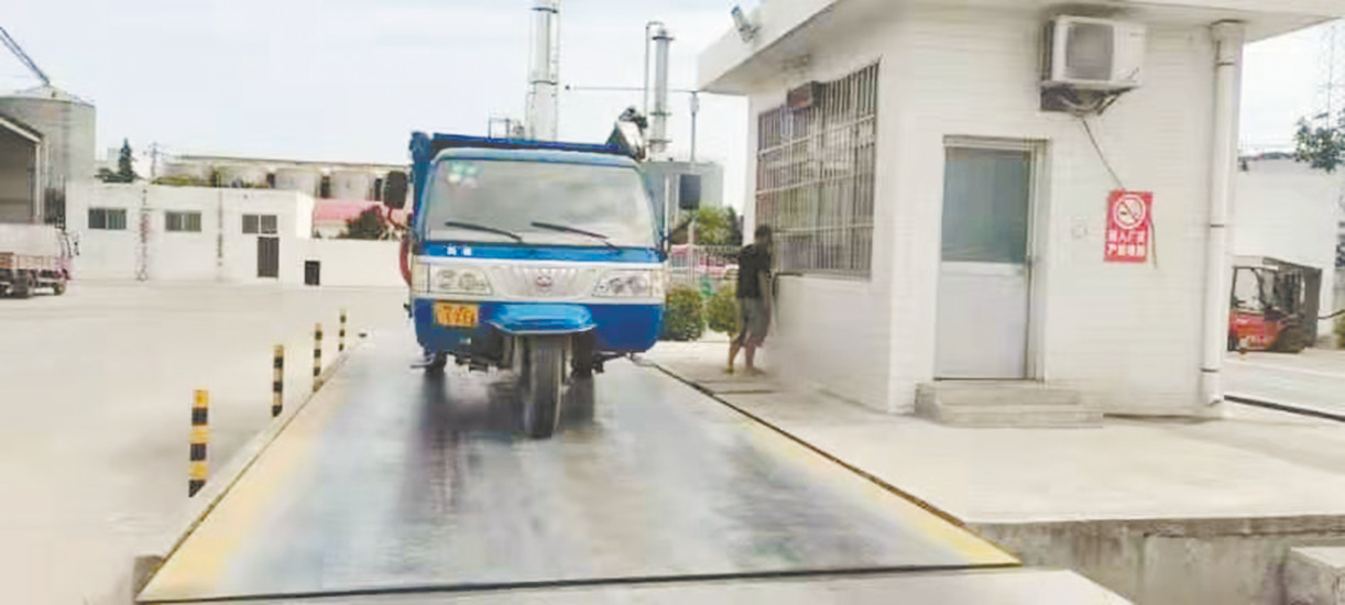 陕西陕富大荔面业有限责任公司里,一辆售粮车正在过磅。