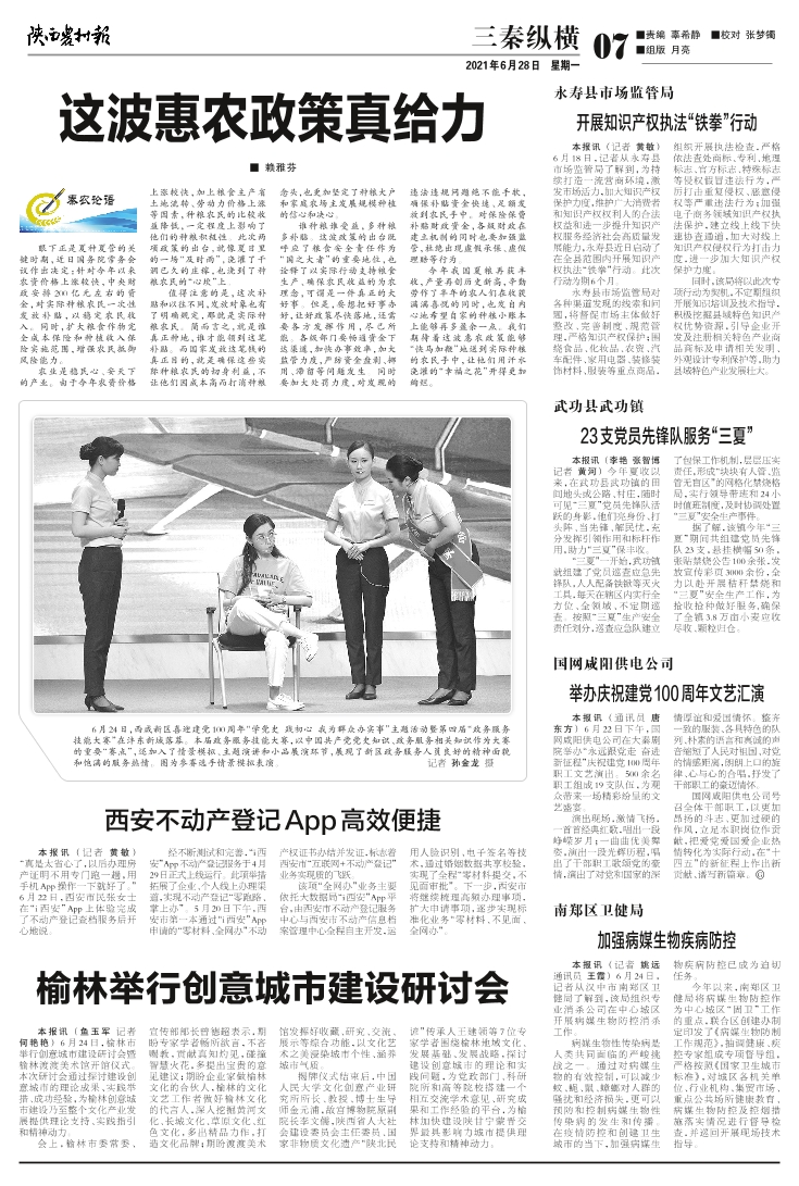 武功县武功镇 23支党员先锋队服务“三夏”