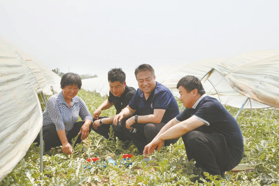 灌区工作人员与群众交流渗灌节水措施。(资料图)