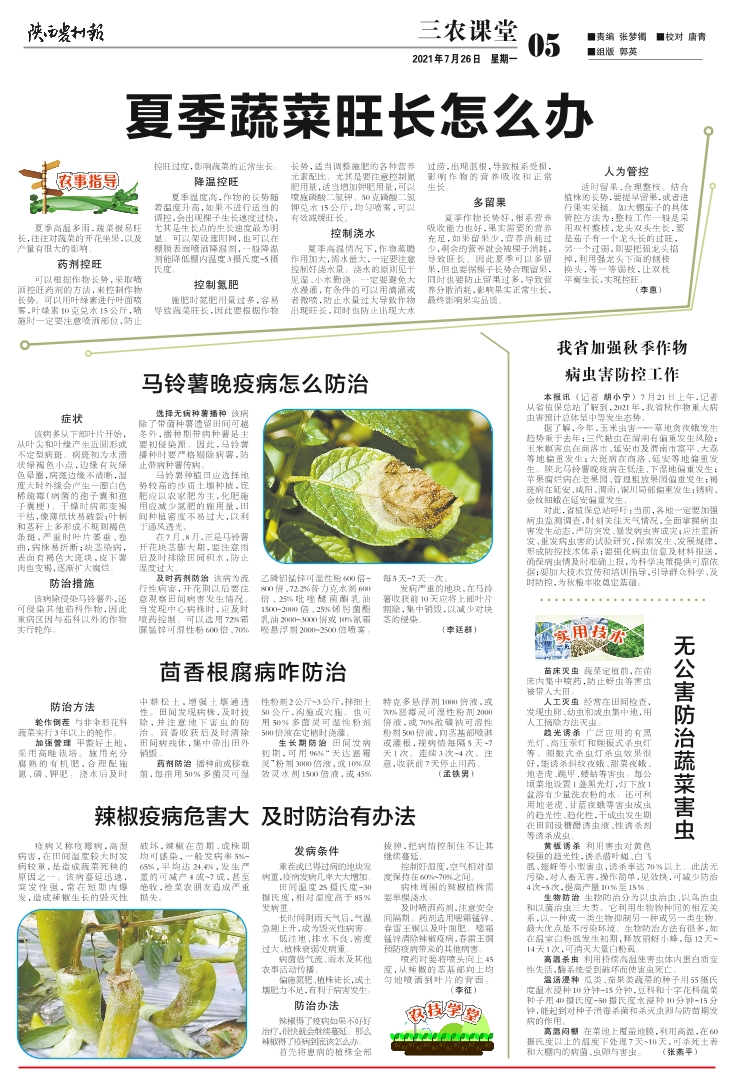 夏季蔬菜旺长怎么办