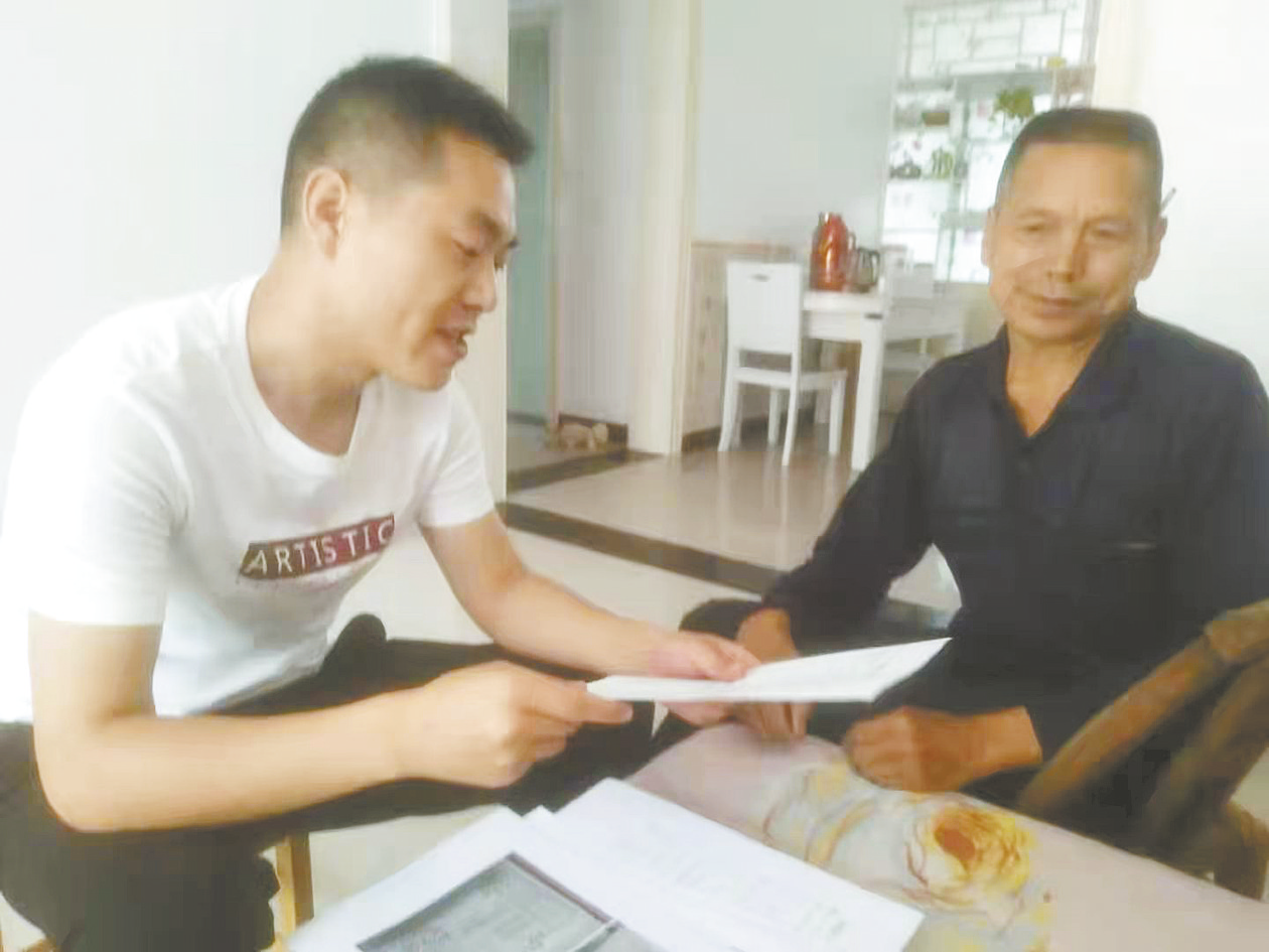 石念锋(左)在帮扶群众家中走访。 本报讯者 黄敏 通讯员 华荣艳 文/图