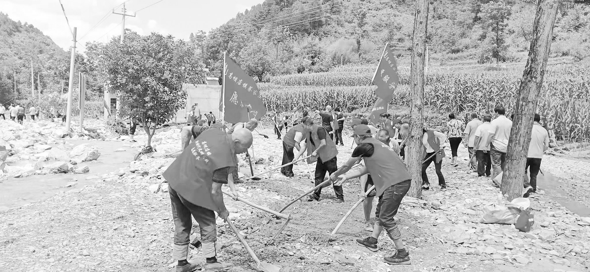 3 灾后重建,做好受灾群众的贴心人 23日9时许,当洪水逐渐退去,勉强可以进村入户后,张水娥和党员干部即刻开始查看灾情,挨家挨户地查看,河对面无法抵达的地方,用喇叭喊话询问。走完了全村所有地方,摸清了全村的基本受灾情况,昔日的美丽乡村一夜之间满目疮痍、惨不忍睹,目睹灾后的村落,张水娥流下了泪水。
