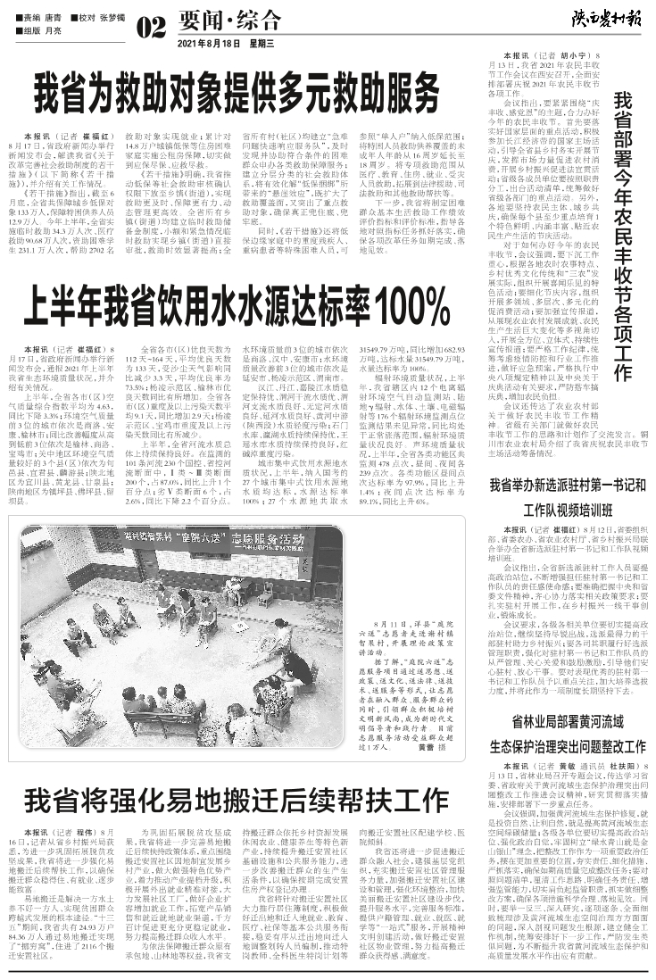 上半年我省饮用水水源达标率100%