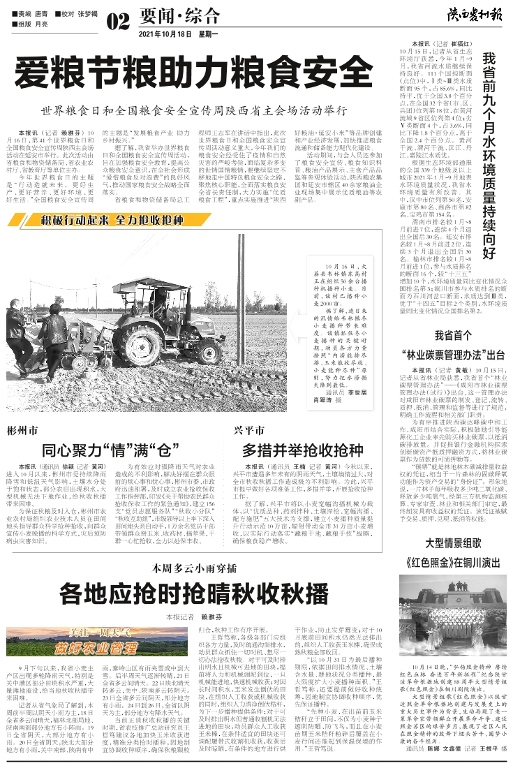 各地应抢时抢晴秋收秋播